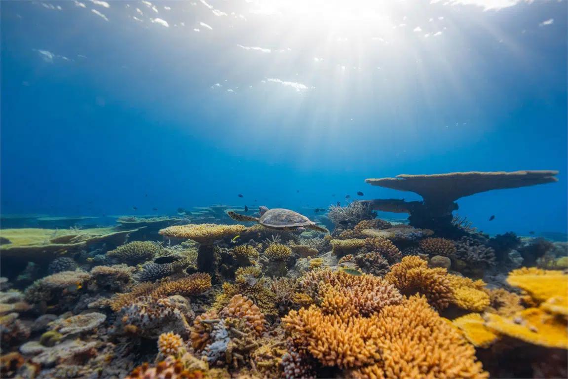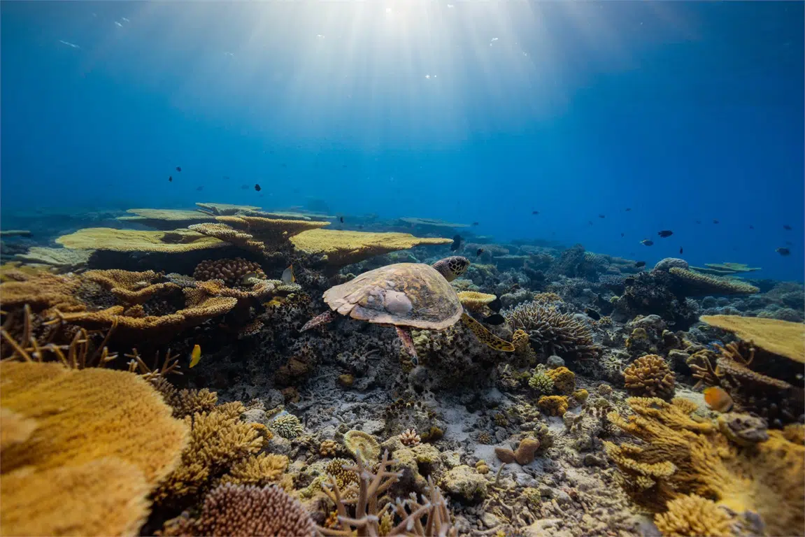 Snorkel at Turtle Reef and spot graceful Hawksbill, Green Sea, and Olive Ridley turtles gliding among colorful coral and tropical fish. Then, relax and explore a pristine sandbank surrounded by crystal-clear waters—an unforgettable Maldivian marine adventure.